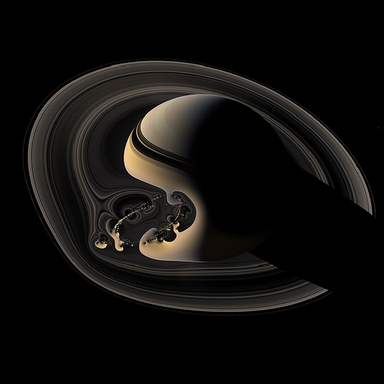 Het werk met de titel birdflock-lens-Q160018-E1 is een giclée-druk van 60x60 cm. Het toont de planeet Saturnus, waarvan het beeld wordt vervormd door het gravitatie-lens-effect ten gevolge van een op grote afstand passerend galactisch ruimteschip. Dit is een van de werken uit de reeks Galactische Ruimteschepen van Vincent Icke. Andere werken van hem zijn te bezichtigen in de Alien Art Galerie. Die is een initiatief van de Stichting Raakruimte, opgezet om kunst, bij voorkeur met een relatie met wetenschap, onder de aandacht te brengen.